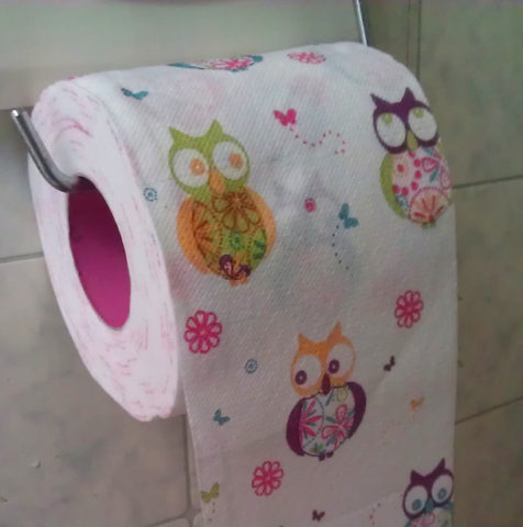 Correct toilet paper roll direction is ‘down from the top’ according to the original TP roll patent! Facts about bathroom behaviors + toilet paper usage.