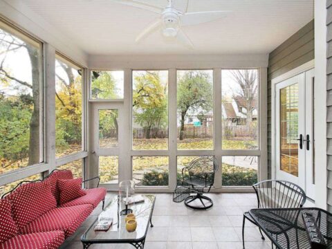 Tired of pollen & rain ruining your porch? See how 4-track vinyl porch windows transformed our space into a clean, dry, 3-season room. Photos & review!